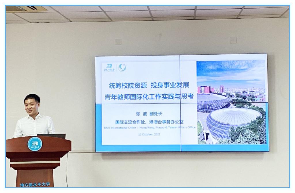 首先,国际交流合作处张波副处长作题为“统筹校院资源,投身事业发展,青年教师国际化工作实践与思考”的报告,介绍了学校国际化发展战略以及在全球网络构建、国际化人才培养、团队建设和科研合作等方面的现状,着重讲解了学校在国际化青年导师队伍建设方面的理念机制和显著成果,同时针对青年教师国际化发展提出了切实可行的建议,希望老师们不忘来路、主动融入、积极服务,将个人成长全面融入学校各项事业发展中。