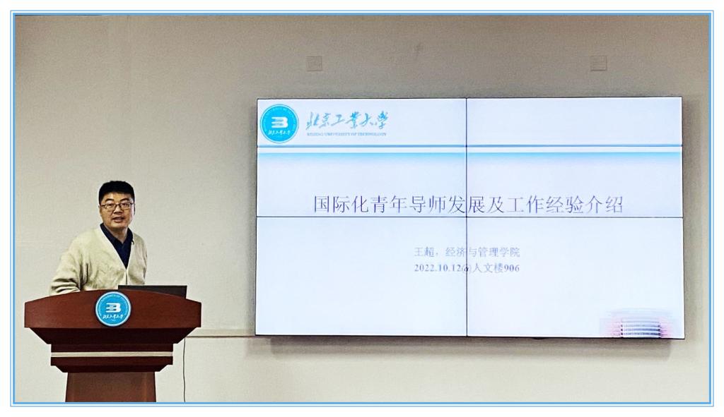 经管学院王超教授详细介绍了自己在教学、科研、英文论文发表方面与国外教授合作的丰富经验和丰硕成果,为参会的青年教师在跨学科国际科研合作方面提供了诸多行之有效和具有启发性的建议。受到了在场青年教师的热烈欢迎。学部入选香江学者,正在香港访学的张优良老师也通过线上的方式,与在座老师分享了个人在香港的访学经历,并希望发挥纽带作用为学部与香港高校的合作牵线搭桥。